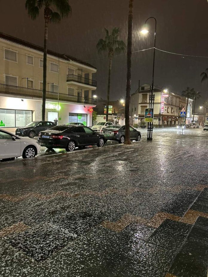 Esta tarde ha caido granizo y ha habido tormenta en la capital y en varios puntos de la provincia, donde ha sido más intensa en la comarca de la Axarquía con una fuerte granizada en Rincón, Vélez, acompañadas por viento.