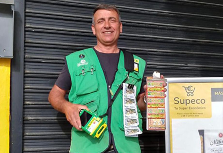 Álvaro Luis Bermejo es vendedor de la ONCE desde el pasado mes de agosto y vende a las puertas del Supeco, en la barriada de Cancelada de Estepona. “No sé quién es el agraciado, ni idea, pero estoy muy contento por quien le haya tocado, ya tenía ganas de dar un premio grande -decía esta mañana nada más conocer que había dado un pellizco grande del Eurojackpot-. Es una satisfacción porque para eso trabaja uno, para darle premios y dar a la alegría a la gente que hace falta”, dice.