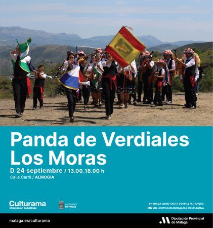 El domingo 24 de septiembre será el turno de la panda ‘Los Moras’, estilo Almogía, en el municipio de Almogía. El último domingo del mes de septiembre se celebra en esta localidad de la comarca del Guadalhorce, el día de la almendra, evento que pretende dar a conocer todas aquellas tradiciones que rodean el cultivo y el procesamiento de la almendra y está declarado como Fiesta de Singularidad Turística por la Diputación de Málaga. La actuación de la panda de verdiales forma parte del programa de actos de ese día y comenzará en la calle Carril a partir de las 13.00 horas hasta las 18.00 horas.