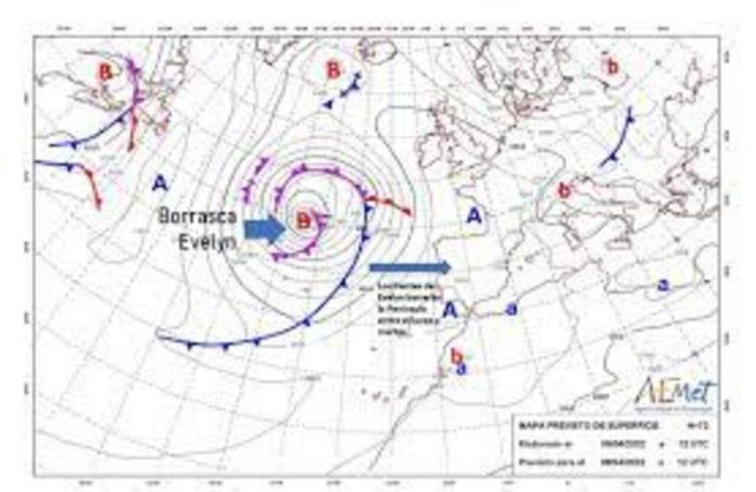 Los frentes asociados a la #BorrascaEvelyn darán lugar a lluvias en la mayor parte de la Península y Baleares conforme vayan barriendo nuestro territorio de oeste a este, principalmente el lunes 11 y martes 12 de abril.