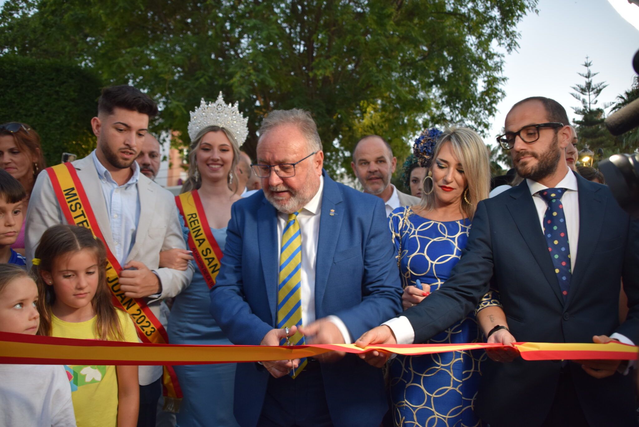 Alhaurín de la Torre ya vive su Feria y Fiestas de San Juan. En la tarde de este miércoles comenzó el amplio programa de actos con el espectacular pasacalles por el centro urbano, seguido del pregón oficial, pronunciado por Ana Sánchez en el escenario del Parque de los Patos, y el tradicional encendido del alumbrado artístico en el arco del recinto ferial. Allí, el alcalde, Joaquín Villanova; el concejal de Fiestas, Andrés García, el resto de la Corporación Municipal, y la Reina y Rey de 2023, entre otros invitados, vivieron el mágico momento del corte de cinta, que dio por inauguradas las fiestas en el real, después de que dos niñas pulsaran el botón de encendido.