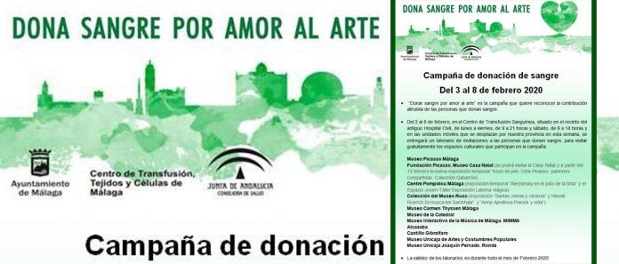 En el Centro Regional de Transfusión las personas que donen sangre del 1 al 15 de febrero, podrán recoger su talonario de invitaciones ‘donar sangre, por amor al arte’, con el que podrán visitar gratuitamente los principales espacios culturales y museísticos de Málaga.