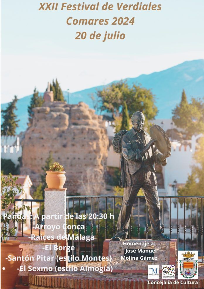 «Como cada año no podemos faltar a nuestra cita con la Cultura Malagueña y Axárquica, en este caso de la mano del XXII Festival de Verdiales de Comares. Un evento en el que se dan cita los tres estilos de la mano en esta ocasión de las Pandas Arroyo Concas, Raíces de Málaga, El Borge representando al estilo Comares y Santón Pintar (estilo montes) y el Sexmo (estilo Almogía)», ha explicado Ruiz