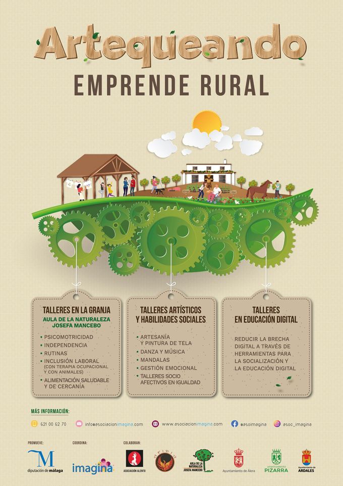 El proyecto que se va a poner en marcha desde esta semana se llama Artequeando Emprende Rural y está financiado por la Diputación de Málaga, delegación de mayores, tercer sector y cooperación al desarrollo a través de las subvenciones a entidades del tercer sector para desarrollar proyectos de atención a la ciudadanía en la provincia de Málaga.