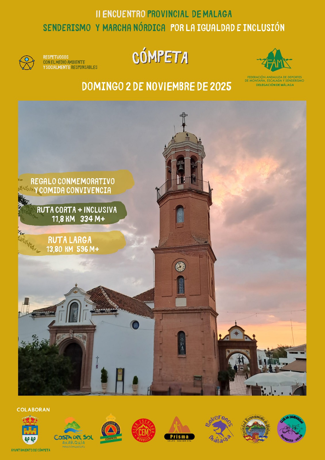 El evento está organizado por la delegación provincial de Málaga de la FADMES y el Ayuntamiento de Cómpeta en colaboración con los clubes malagueños: Club Escalada Marbella, Bokerones Malaga; Sociedad Excursionista de Málaga; Club de Senderismo Rompebotas Málaga y C.D. Grupo Senderista Prisma. «Desde el Ayuntamiento de Cómpeta apoyamos firmemente este tipo de iniciativas que promueven la inclusión, la accesibilidad y el deporte para todos y para todas. Estamos orgullosos de que nuestro pueblo sea de nuevo el escenario de un evento con estos valores», ha afirmado el concejal de Deportes animando a la participación «en esta jornada inolvidable, llena de naturaleza, solidaridad y buena compañía».