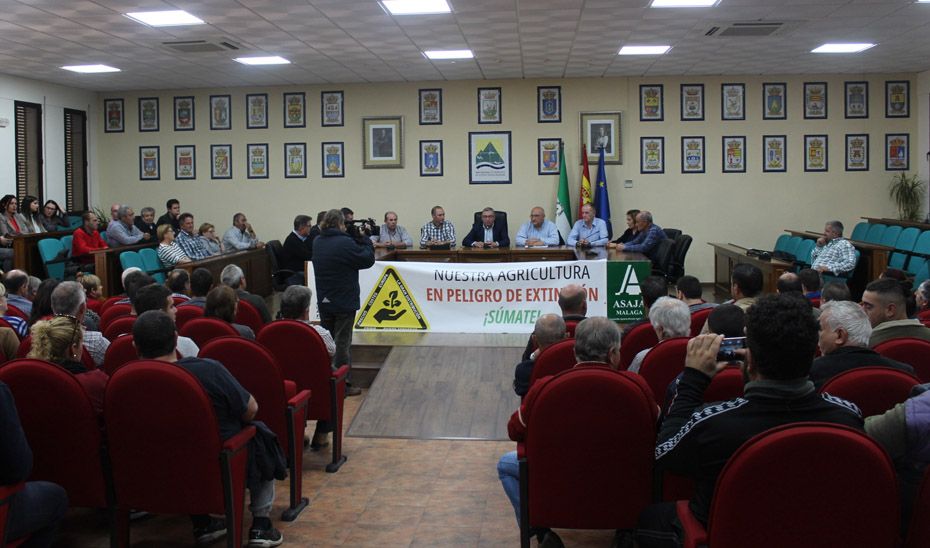 El presidente de la Mancomunidad de Municipios de la Costa del Sol Axaquía, José Juan Jiménez, los vicepresidentes Jorge Martín y Juan Peñas , otros vocales de la institución supramunicipal así como representantes municipales como el alcalde de Algarrobo, Alberto Pérez y José Luis Ruiz, han estado en la concentración que las organizaciones agrarias ASAJA, UPA y COAG han organizado en la sede comarcal para reivindicar mejoras para el sector.
