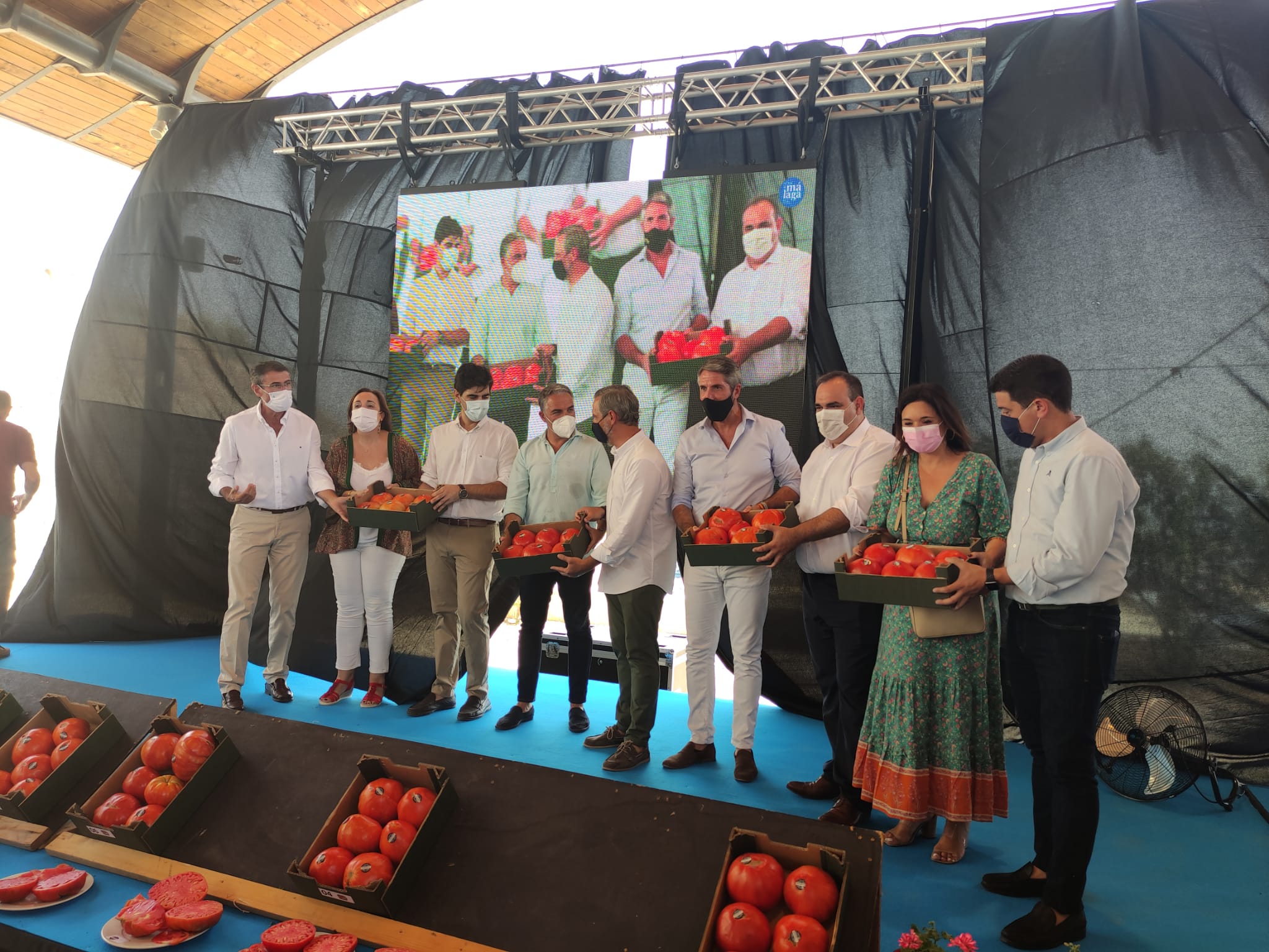 Allí han participado en la entrega de premios del tradicional » Concurso Hortofrut í cola de Co ín» y en la posterior subasta al » Mejor Tomate Huevo de Toro 2021 » cuya máxima puja ha alcanzado los 1550 euros, realizada por el gerente de la cadena malagueña de supermercados Maskom, Sergio Cuberos. La recaudación ha ido a beneficio de la Asociación de familias con diversidad funcional ‘ DeColores ‘.