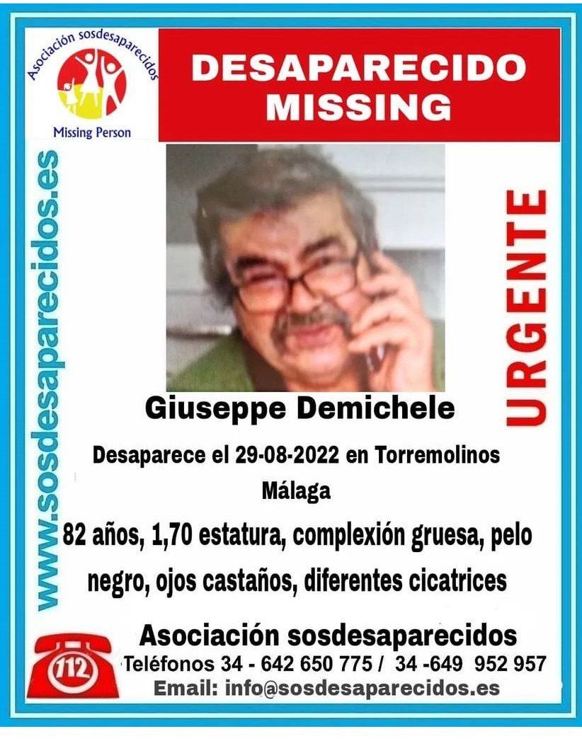 Cualquier persona que sepa algo sobre el paradero de Giuseppe puede contactar en los teléfonos de SOS Desaparecidos 642 650 775 y en el 649 952 957. Además el correo electrónico de contacto es info@sosdesaparecidos.es.