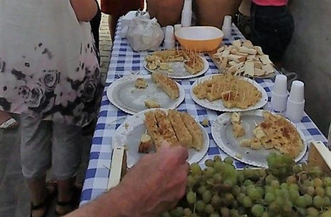 Los iznateños sacan a la calle lo mejor de sus cocinas para que los visitante desgusten la comida más tradicional y autóctona con sopas frías, segundos platos y unos riquísimos postres que endulzaran este día acompañado de uvas y vino