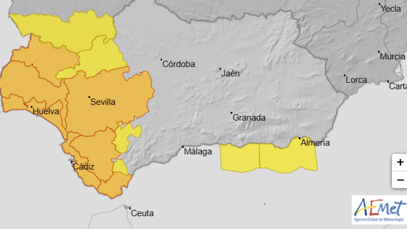 Los niveles naranjas se trasladan ahora a las provincias de Huelva, Sevilla y Cádiz. En