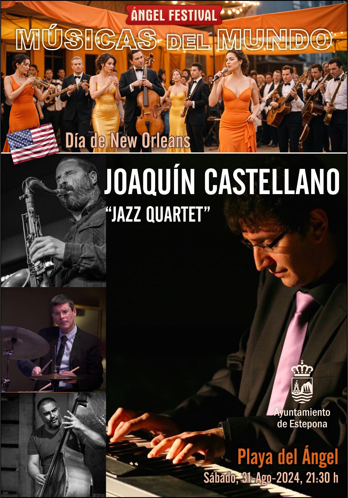 El sábado 31 estará dedicado a New Orleans. El músico y pianista Joaquín Castellano actuará con su cuarteto de jazz ‘Joaquín Castellano Jazz Quartet’, formado en 2019 junto a Emilio Big Márquez (contrabajo), Orestes Bosch (saxo tenor) y José Luis Gómez (batería).