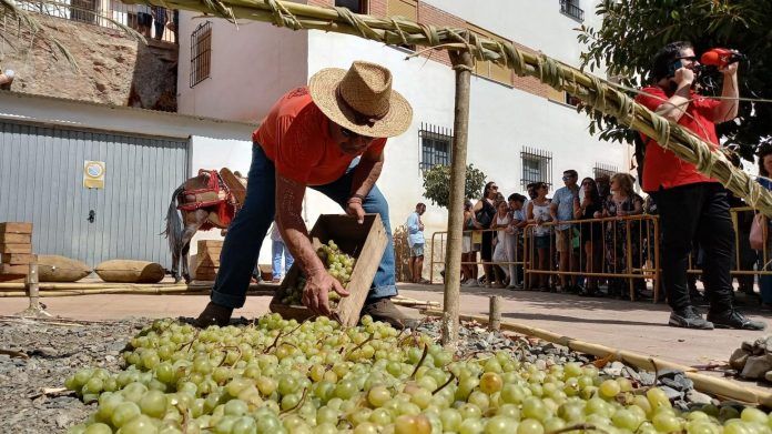 El municipio espera recibir a unos 10.000 visitantes en esta jornada, apadrinada este año por el actor malagueño Salva Reina, en la que se degustan 700 kilos de pasa y 600 litros de vino.