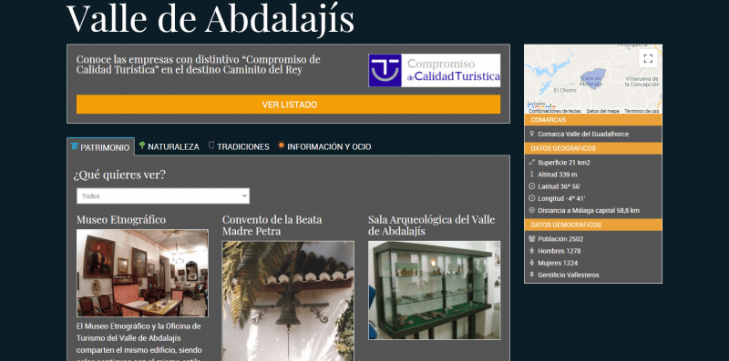 El Caminito del Rey es finalista en la categoría ‘Mejor material promocional digital’, ya que su web reúne enlaces específicos para cada uno de los municipios que forman parte de su entorno (Álora, Antequera, Ardales, Campillos, Carratraca y Valle de Abdalajís), para aportar todos los datos de interés turístico de estas localidades. Además de datos básicos de cada municipio, como superficie, población o altitud, aportan información sobre el patrimonio, naturaleza, tradiciones y ocio. Además, dentro de la búsqueda de la calidad del destino turístico, también se incorpora un enlace a las empresas con distintivo ‘Compromiso de Calidad Turística’.