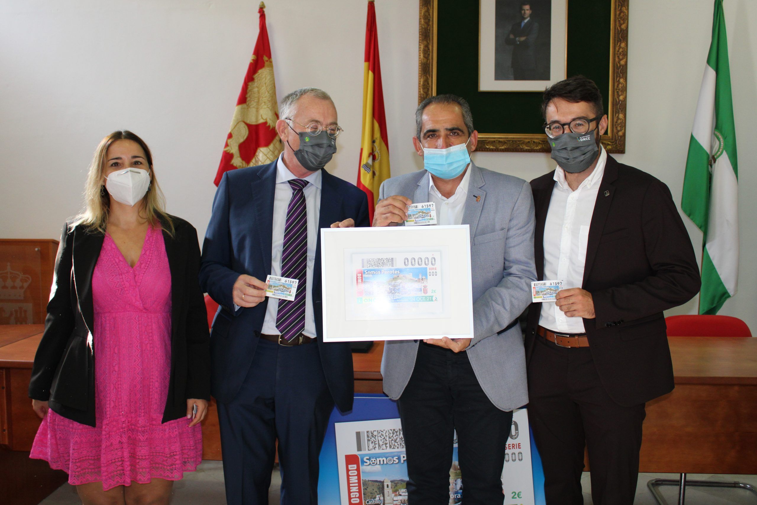 La imagen de Álora va a recorrer toda la geografía española, con los boletos del sorteo de la ONCE, el domingo 24 de octubre. Al finalizar se han hecho una foto de familia con una lámina que enmarca este cupón.