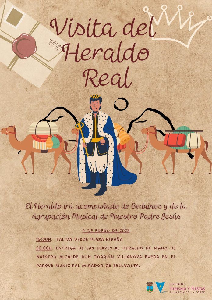 Alhaurín de la Torre recibirá este jueves, 4 de enero, la visita del Heraldo Real de sus Majestades los Reyes Magos de Oriente, en un desfile que comenzará en la plaza de España a las 19:00 horas y finalizará en el Parque de Mirador de Bellavista a las 20:00 horas, donde las primeras autoridades municipales harán entrega de las llaves de la villa al emisario. Las obras en la sede consistorial han obligado a realizar esta entrega en el escenario del recinto municipal.