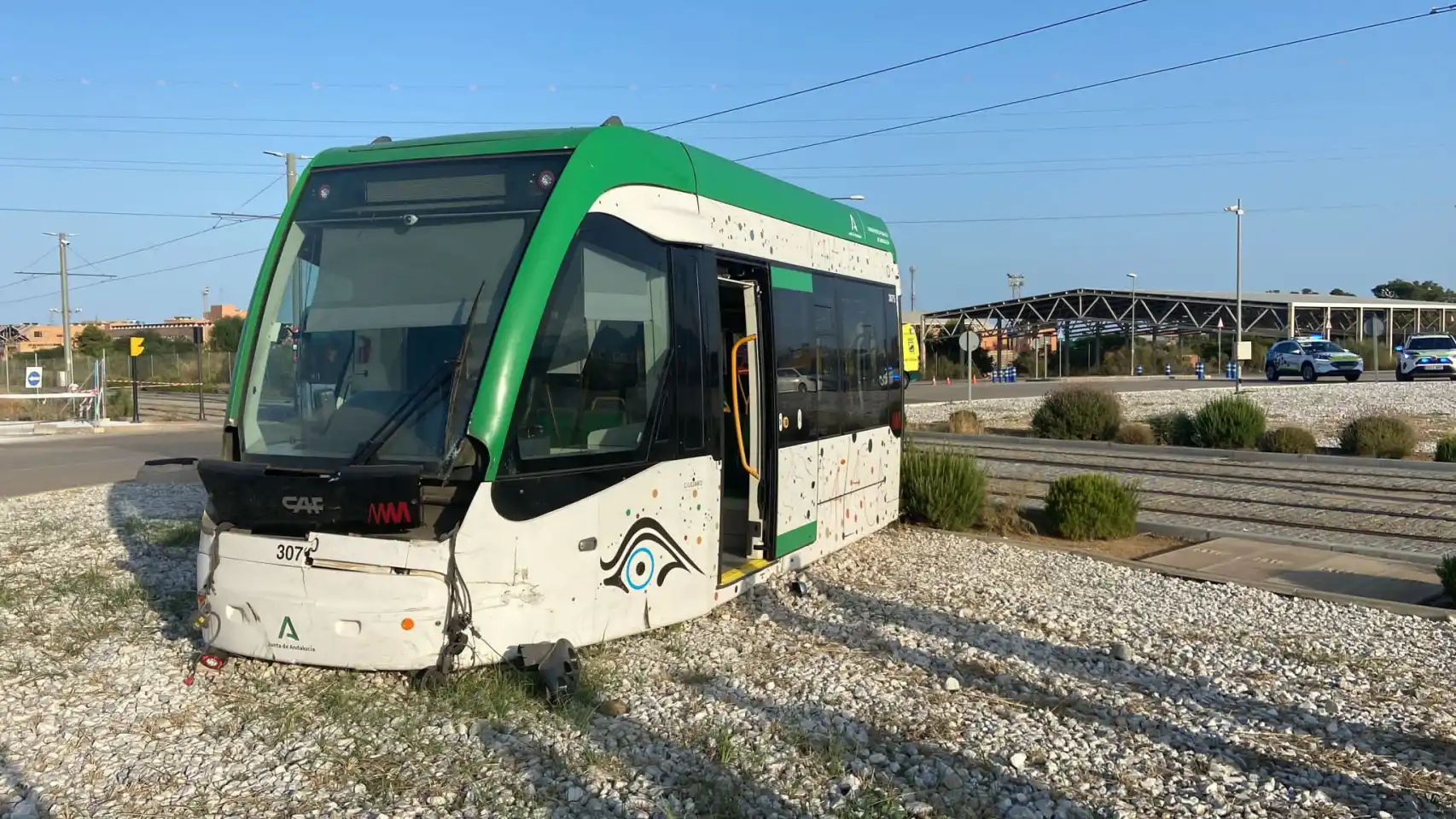 El Metro de Málaga arrolla a un turismo y descarrila en un accidente con cuatro heridos