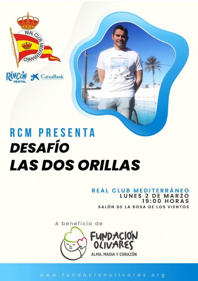 El nadador del Real Club Mediterráneo Luis Portillo afrontará el próximo mes de julio el “Desafío las dos orillas’, con el que pretende lograr el doble cruce a nado del Estre- cho de Gibraltar a beneficio de la Fundación Olivares, dedicada a los niños enfermos de cáncer. Portillo es además agente de la Policía Local en el Ayuntamiento de Benaha- vís, patrocinador principal de este reto deportivo solidario.