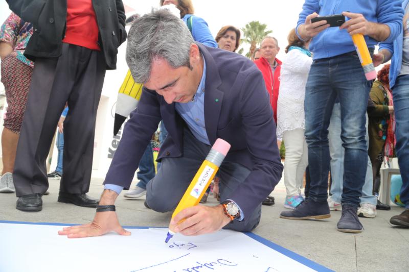 El viernes 20 de abril Benalmádena acogió por segunda vez la instalación del Poema Gigante. El alcalde de Benalmádena, Víctor Navas; y la concejala de Cultura, Elena Galán, presidieron el acto oficial, que ha consistido en la elaboración por parte de la ciudadanía de un poema gigante de 120 metros de longitud en la avenida de la Constitución de Arroyo de la Miel, a la altura de la Casa de la Cultura.