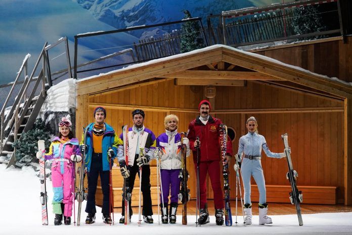 El elenco que protagoniza la obra está formado además por Olalla Hernández, Bárbara Santa-Cruz, Cecilia Solaguren, Pablo Vázquez y Ángel Velasco, quienes han tenido que enfrentarse a dificultades como «esquiar» en directo, ha apuntado Montserrat-Drukker.