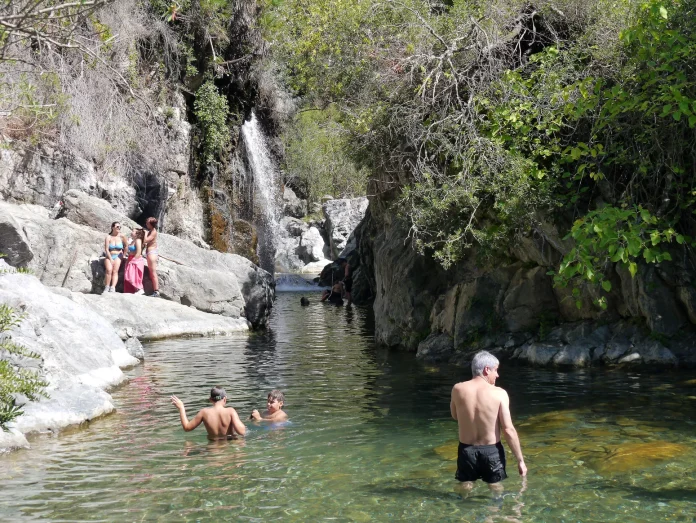 Justo allí tienes que dejar el coche para seguir el camino a pie, en este caso por medio de una pista que sigue el margen del cauce. Son unos dos kilómetros y medio que valen la pena y que aseguran que no te toparás con demasiados turistas una vez en las pozas.