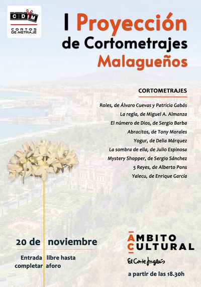 En colaboración con el Ámbito Cultural de El Corte Inglés de Málaga,, Cortos de Metraje organiza una proyección de cortometrajes malagueños el próximo lunes día 20 de noviembre de 2023 a las 18:30 h.