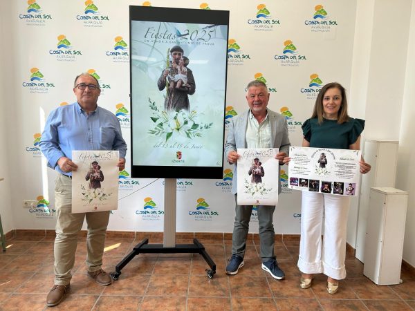 El presidente de la Mancomunidad de Municipios de la Costa del Sol Axarquía, Jorge Martín; el alcalde de Iznate, Gregorio Campos y la concejala de Fiestas, Tradiciones y Cultura, Mercedes Gallardo han presentado esta mañana las Fiestas en Honor a San Antonio de Padua que se celebrarán desde el viernes 13 al domingo 15 de junio.