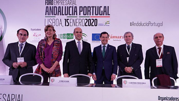 Del mismo modo, Moreno ha aprovechado la presencia del empresariado portugués para recordarles que cuentan con una Oficina de Promoción de Negocios en Lisboa, que forma parte de la Agencia Andaluza de Promoción Exterior, Extenda. En este punto, el presidente ha anunciado que, a través de Extenda, a lo largo del 2020 realizarán en Portugal dos misiones comerciales para sendos sectores estratégicos para Andalucía, como son el agroalimentario y el aeronáutico. Dos de los capítulos que lideran las exportaciones andaluzas, pues sólo el agroalimentario supone una cuarta parte de las ventas. En esta línea, Moreno ha hecho un llamamiento a beneficiarse aún más de las ventajas del Mercado Único Ibérico, «que tan bien explotan las grandes empresas». «Hagamos que también las pymes portuguesas y andaluzas operen con naturalidad en uno y otro lugar de la frontera. Mejor aún: hagamos que no haya frontera, sobre todo disipando la psicológica».