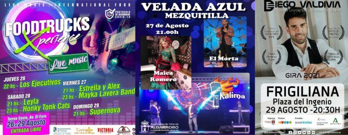 Torrox inaugura este jueves el Foodtruck Xperience, Mezquitilla celebra una serie de conciertos y Frigiliana cierra su Agosto Cultural con un teatro y la actuación de Diego Valdivia.