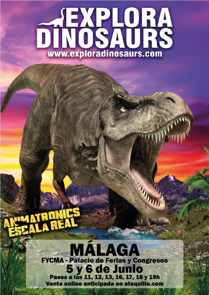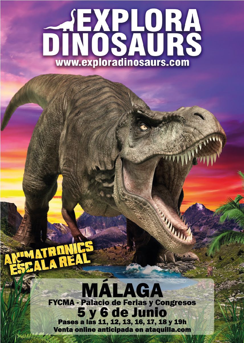 El mundo de los dinosaurios llega a Málaga de la mano de ‘Explora Dinosaurs‘, una exposición interactiva con réplicas animatrónicas a tamaño real de las criaturas que habitaron la Tierra hace más de 200 millones de años, incluyendo un Brachiosaurus de 12m. La muestra, que además contiene actividades para disfrutar en familia, podrá verse este sábado y domingo de 11:00h a 14:00h y de 16:00h a 20:00h en el pabellón de FYCMA, Palacio de Ferias y Congresos. Las entradas, a un precio de 9€ para adultos y 7€ para menores de edad, ya están a la venta en el portal ataquilla.com, y también se podrán conseguir en la taquilla física del pabellón los mismos días.