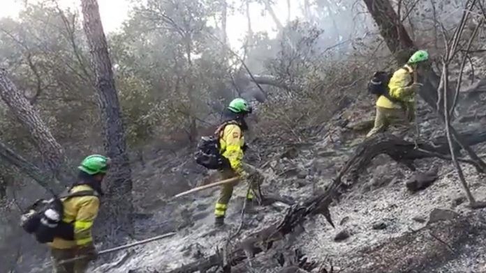 Este martes las labores de los bomberos se han centrado en la zona este del incendio y los efectivos de Infoca están abriendo de forma manual una línea perimetral para afianzar el perímetro. «Esta labor es dura y lenta puesto que el matorral existente es denso y de grandes dimensiones», han indicado desde Infoca.