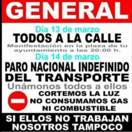 Los trabajadores insisten en que la brutal subida del gasóleo les va a llevar a la «quiebra total» y esperan un cambio de actitud por parte del Gobierno de la patronal. La Plataforma Nacional en Defensa del Transporte sigue con su calendario de movilizaciones con manifestaciones que llaman a los ciudadanos a concentrarse a las puertas de cada ayuntamiento este domingo 13 de marzo, un día antes del paro indefinido.