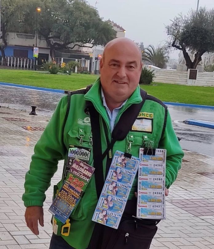 López es vendedor de la ONCE desde 2019 y tiene su punto de venta ubicado a las puertas de un supermercado en la avenida de las Naciones de la localidad malagueña.