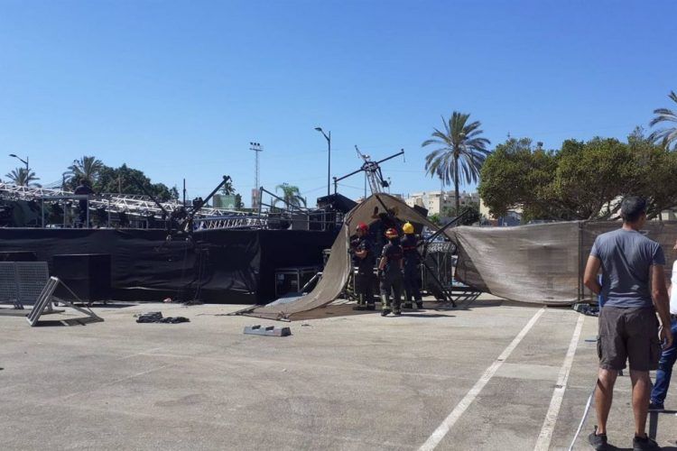 Las actuaciones en la zona joven del Real de la Feria de Málaga han sido suspendidas este lunes hasta nuevo aviso tras desprenderse el puente luz y la pantalla escenario.
