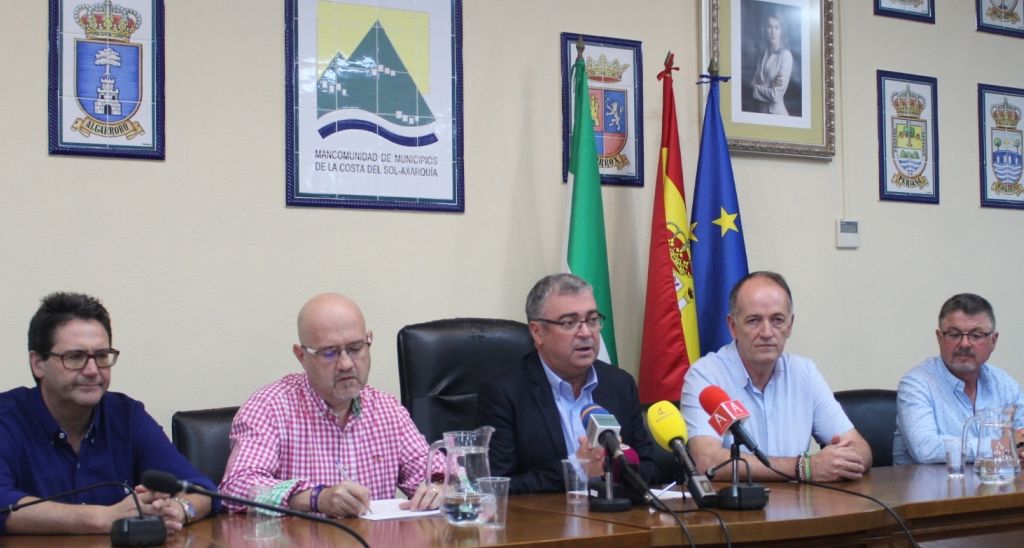 El presidente de la Mancomunidad de Municipios de la Costa del Sol Axarquía, José Juan Jiménez; el vocal de Playas, Jesús Pérez Atencia; el de Turismo, Juan Peñas y los vicepresidentes, Jorge Martín y Antonio Sánchez han ofrecido esta mañana los datos relativos al servicio de limpieza superficiales de las aguas del litoral que se ha llevado a cabo desde el 15 de junio al 15 de septiembre. Concretamente, en los municipios de Vélez-Málaga, Algarrobo, Torrox y Nerja.
