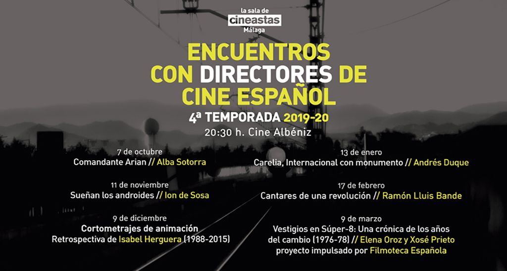 La siguiente cita de La Sala de Cineastas Málaga tendrán lugar el 11 de noviembre, con la proyección de la cinta Sueñan los androides del cineasta donostiarra Ion de Sosa, una película a medio camino entre la ciencia ficción y el thriller. El 9 de diciembre el público podrá disfrutar de una retrospectiva de la obra de una de las más reconocidas creadoras de animación en nuestro país, Isabel Herguera. El 13 de enero comenzaremos el año con Carelia, Internacional con monumento, la última película del cineasta hispano-venezolano Andrés Duque. El 17 de febrero se proyectará el filme documental Cantares de una revolución, realizado por el asturiano Ramón Lluis Bande, un musical político interpretado por el músico Nacho Vegas.