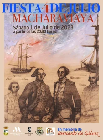 Desde el 2.009, se conmemora la Independencia de los Estados Unidos de América, como homenaje y reconocimiento a la contribución que hizo el General D. Bernardo de Gálvez, natural de Macharaviaya, a la independencia de dicho país. Fiesta declarada, también, de singularidad provincial. Como el 4 de julio no es un dia festivo, la fiesta se suele trasladar al sábado mas cercano a esa fecha, pero a modo de promoción, el 4 de julio se hace un desfile por el centro de Málaga invitando a venir a la celebración a Macharaviaya. El punto fuerte del evento es una recreación histórico militar de la batalla de Pensacola, además desfiles, música, comida americana… y termina con fuegos artificiales. Participan la Asociación de Granaderos y Damas de Gálvez de Macharaviaya y la Asociación Torrijos 1831.