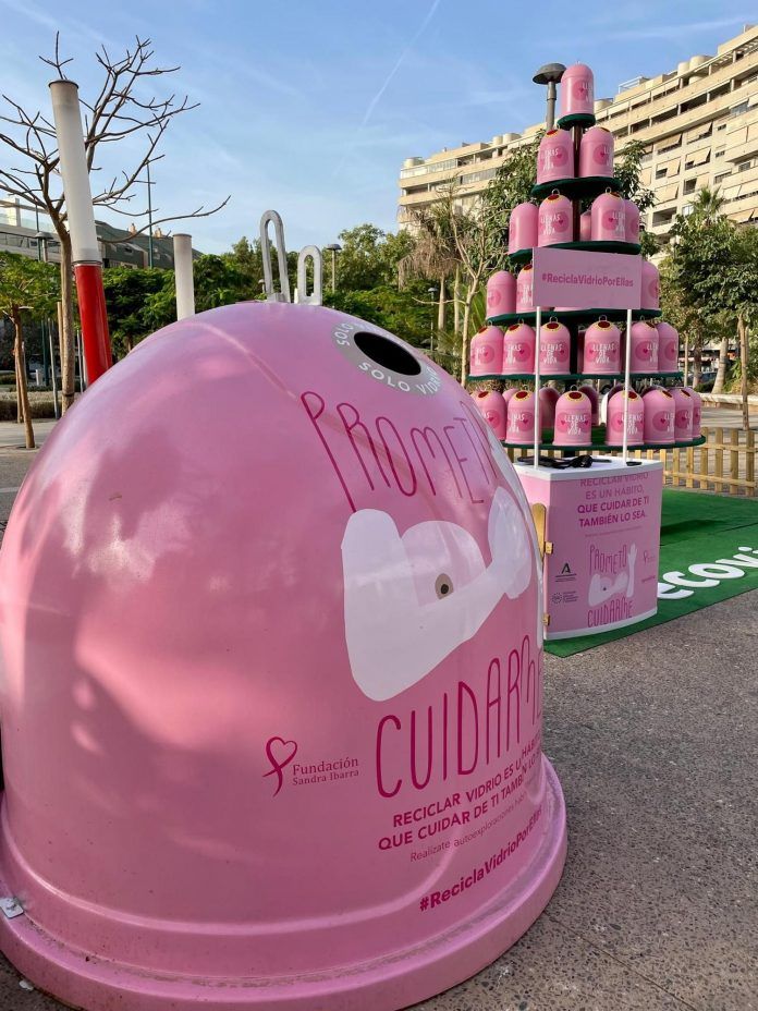 Así, durante toda esta semana habrá dos contenedores de vidrio decorados de rosa en la plaza de la Solidaridad de Málaga capital. Al finalizar la campaña se realizará una donación a la Fundación Sandra Ibarra. Además, Ecovidrio ha instalado en este mismo punto un árbol formado por miniglús rosas y un estand informativo en el que los visitantes podrán acceder a un sorteo para conseguir uno de estos minicontenedores.