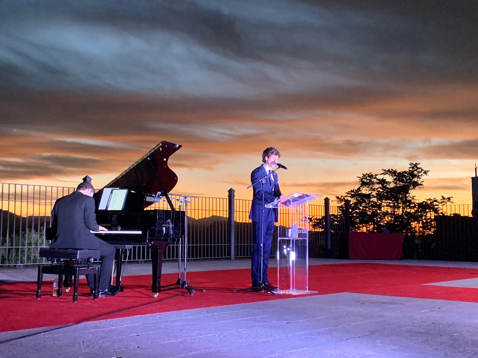 En su discurso, el artista alabó la ciudad del Tajo, así como sus gentes y tradiciones, y por supuesto, la pasión con la que viven las fiestas que este año se celebrarán del 29 de agosto al 3 de septiembre. En este acto, celebrado en un auditorio Blas Infante lleno hasta la bandera, ha recordado sus poderosos vínculos profesionales y personales con la ciudad, que además le honró, a través del reconocimiento del ‘catite de oro’, que le entregó la peña del mismo nombre el pasado año.