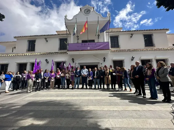 Una pancarta morada colgada sobre el balcón del Ayuntamiento de Mijas ha sido testigo de la lectura de un manifiesto “consensuado tanto con los sindicatos representados en este ayuntamiento como con todos los grupos políticos, por tanto es un texto que representa a toda la ciudadanía mijeña”, añade por su parte Martínez, quien ha recalcado que el 8 de Marzo es una fecha para celebrar «pero también para seguir reivindicando, porque detrás de cada derecho, detrás de cada avance, está la lucha feminista, la lucha de las mujeres. No podemos permitirnos dar ni un paso atrás mientras exista brecha salarial, problemas de conciliación laboral o las violencias machistas”.