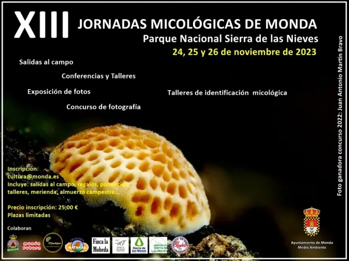 Las XIII Jornadas Micológicas de Monda se celebrarán los días 24, 25 y 26 de Noviembre con el despliegue de un gran número de actividades entre las que se incluyen salidas al campo para la recolección de setas, talleres de identificación micológica, charlas y ponencias, exposición de fotografías micológicas, concurso fotográfico, degustaciones, almuerzo campestre, regalos, así como una gran oferta gastronómica preparada por los establecimientos locales de Monda.