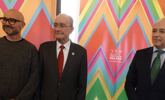 Así lo ha anunciado Festival de Málaga en una rueda de prensa celebrada esta mañana con la participación del alcalde de Málaga, Francisco de la Torre; la concejala de Cultura del Ayuntamiento de Málaga, Noelia Losada; el director de Festival de Málaga, Juan Antonio Vigar, y el diseñador del cartel ganador, Pedro Cabañas. Han participado también representantes de las instituciones y empresas patrocinadoras: la subdelegada de Gobierno en Málaga, María Gámez; la delegada territorial de Cultura en Málaga de la Junta de Andalucía, Carmen Casero; el diputado de Cultura de la Diputación de Málaga, Víctor González; el director territorial de CaixaBank en Andalucía Oriental y Murcia, Juan Ignacio Zafra; el director de Diario Sur, Manuel Castillo; la directora regional de Relaciones Institucionales de Cruzcampo, Ada Bernal; y Rosa Pérez, productora Atresmedia Cine.