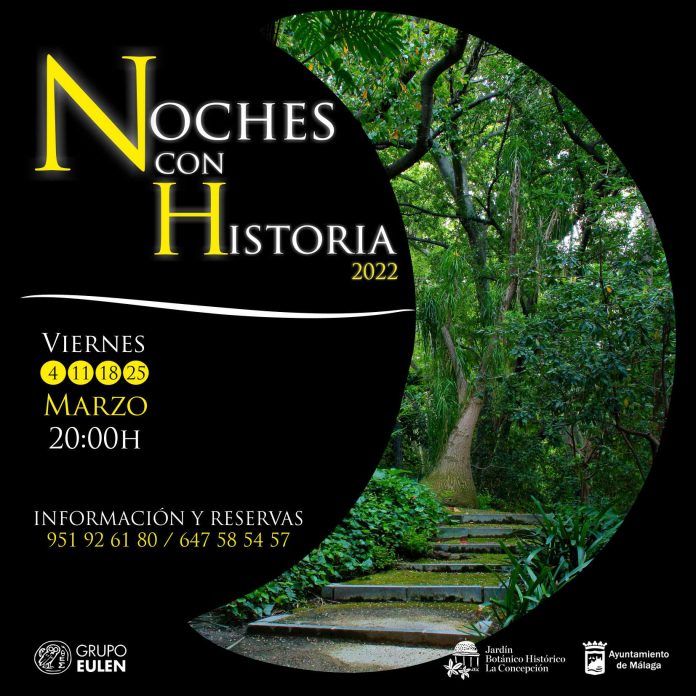 Las visitas guiadas nocturnas “Noches con historia” tendrán lugar todos los viernes de marzo a las 20:00h. Se recorrerá la zona histórica del Jardín y el interior de la antigua biblioteca de la Casa Palacio de los marqueses de Casa Loring. La duración de la visita será de 1 hora y 30 minutos aproximadamente. Esta actividad tiene una tarifa de 8,40€/persona