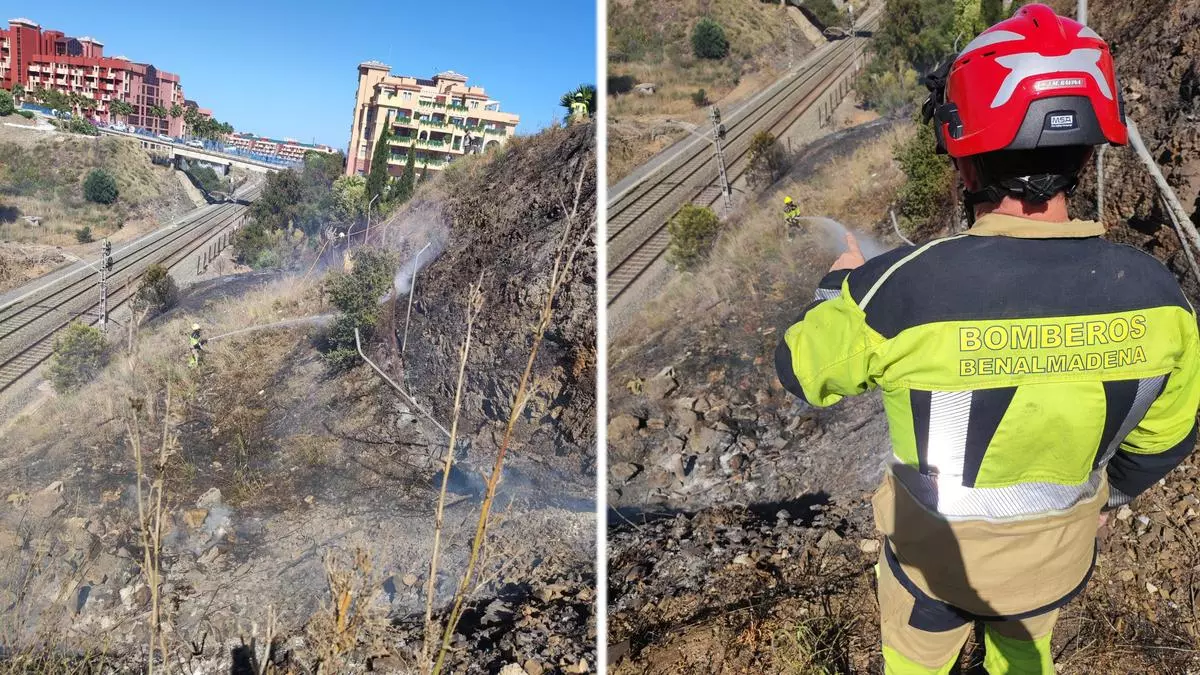 Un incendio, junto a la vía en la urbanización de Carvajal, provocó el corte de la circulación de los trenes…