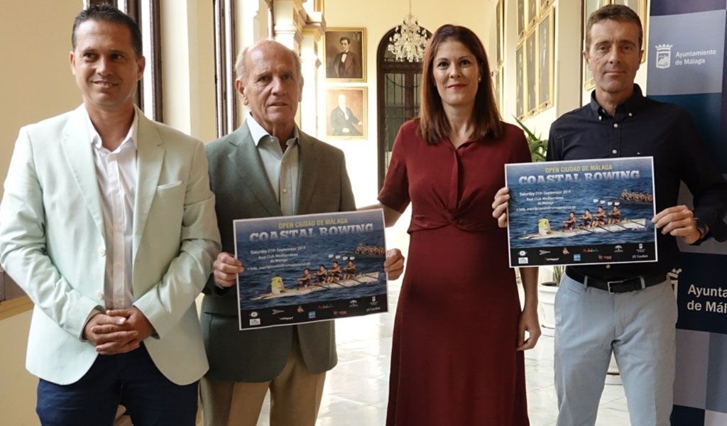 La concejala de Deporte, Noelia Losada, acompañada del presidente del Real Club Mediterráneo, Eduardo Cestino, y miembros de la directiva del club, ha presentado esta mañana, el I Open Ciudad de Málaga de Remo de Málaga que se celebrará el próximo sábado 21 de septiembre en aguas de La Malagueta con la presencia de remeros de toda Andalucía y del resto del territorio nacional.