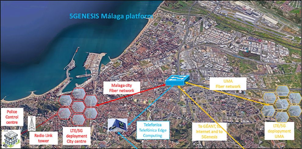 • plataforma de computación de borde en las instalaciones de Telefónica en la ciudad de Málaga (cerca de los nodos de acceso desplegados en el centro de la ciudad) para demostrar las ventajas de las capacidades de MEC