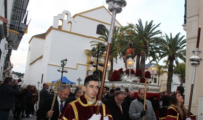 El patrón de Alhaurín de la Torre recorrió las principales calles del centro histórico tras partir de la iglesia parriquial -una vez celebrada la misa- a las seis de la tarde, lugar que fue el punto de llegada tras dos horas de trayecto. Además, durante el recorrido se le hicieron dos petaladas, y entre aplausos y vítores se despidió a San Sebastián.