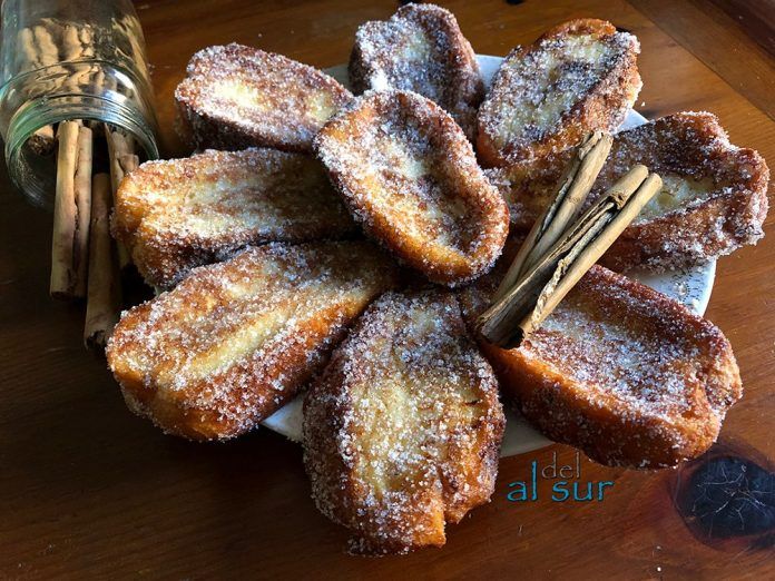 La torrija es una receta elaborada con rebanadas de pan asentado de varios días y empapado en leche o vino y frito en sartén