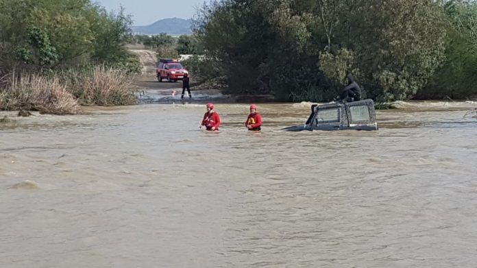 En concreto, han acudido efectivos equipados para el rescate en lámina de agua y dos vehículos de bomberos que han contribuido al rescate del conductor y al traslado del vehículo fuera del cauce del río.
