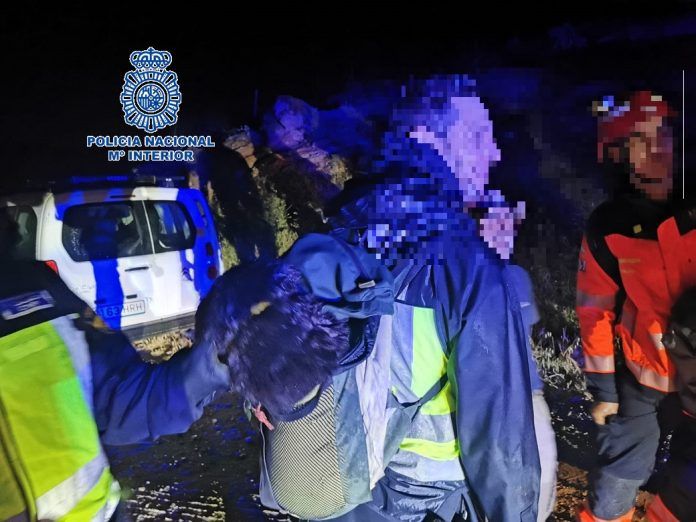 Agentes de la Policía Nacional, Policía Local, efectivos de bomberos y Protección Civil rescataron sobre las dos de la madrugada del pasado jueves a dos senderistas y su mascota que se habían perdido en un paraje de difícil acceso en el Torcal de Antequera y no podían encontrar el camino de vuelta debido a que caía la noche y había tormenta.