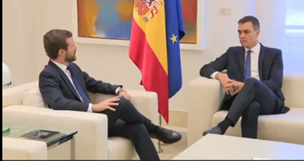 El presidente del Gobierno en funciones, Pedro Sánchez, ha trasladado este miércoles al líder del PP, Pablo Casado, que no descarta «ningún escenario» en Cataluña, que está «todo previsto» y que actuará, si es preciso, «desde la firmeza, la proporcionalidad y la unidad».